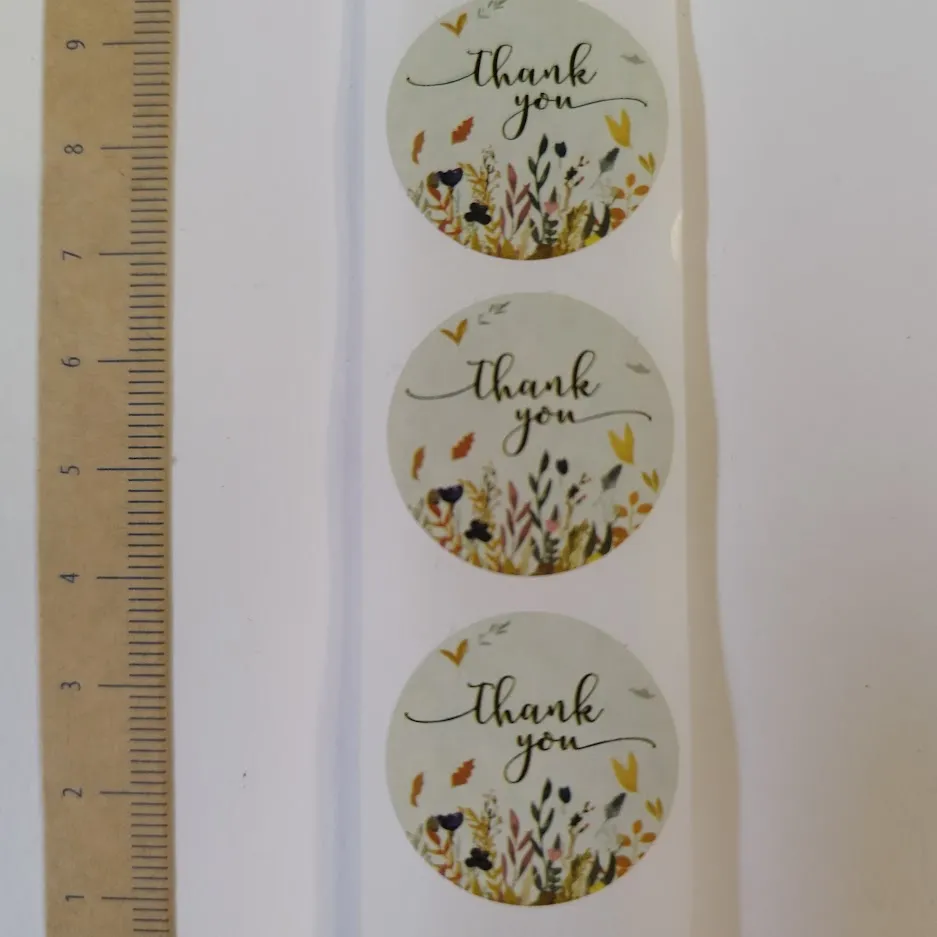 Papírová samolepící kolečka s nápisem Thank you a přírodním motivem.
