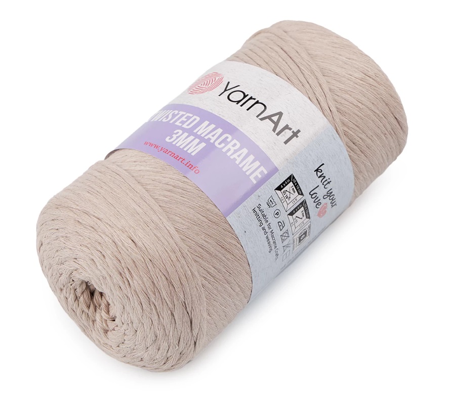 - Metráž -Yarn Art Twisted macrame 3 mm - režná 1m